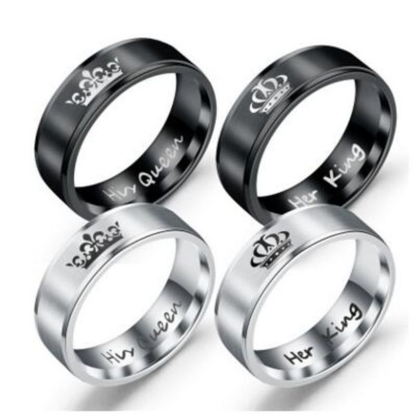 Acheter Acier Inoxydable Son Roi Sa Reine Bague Argent Bande Noire Bague Couple Bagues Pour Amoureux Bijoux De Mariage De 0 61 Du Wulingling9988