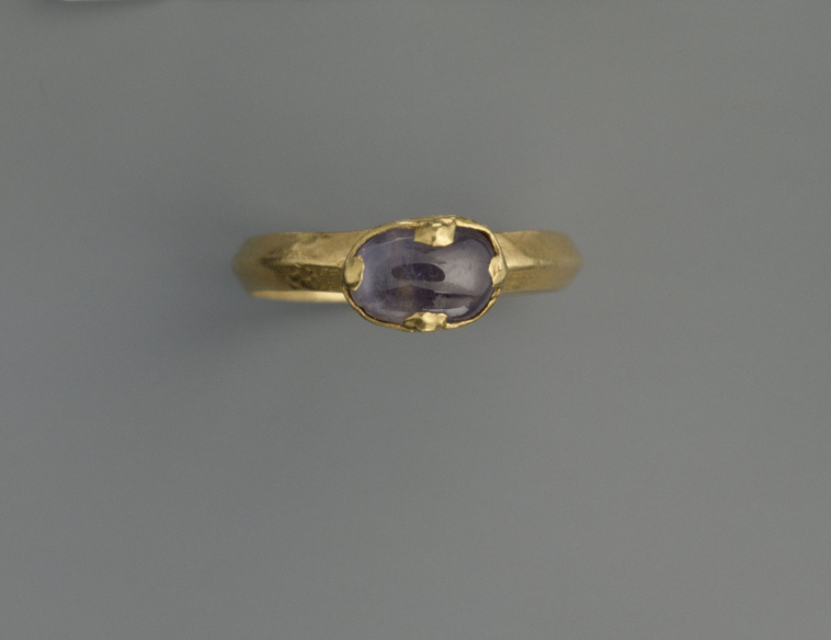 Bague A Chaton Ovale Contenant Une Amethyste Tenue Par