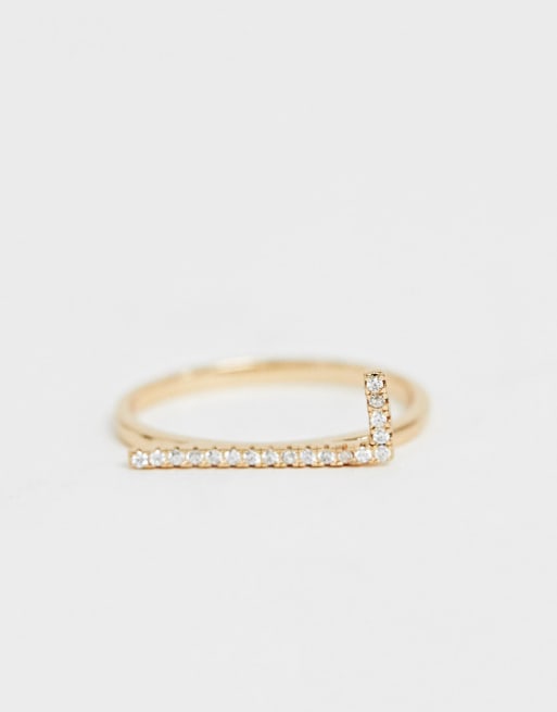 Bague Initiale R Initiale Reglable Avec Zircones En Or