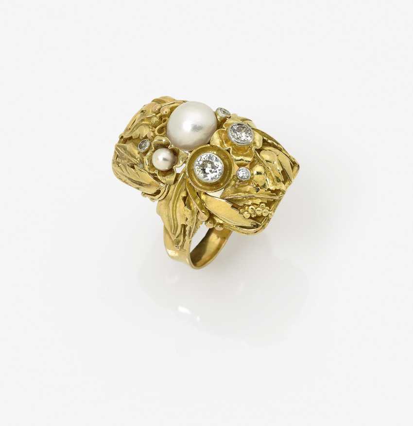 Lot 1036bague Avec Diamants Et Perles De Culture
