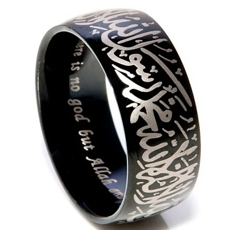 3 62 Noir 8 Mm Taille 7 15 Acier Inoxydable Allah Arabe Aqeeq Shahada Islamique Musulman Anneau Bande Muhammad Dieu Coran Moyen Orient In Anneaux
