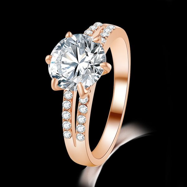 Details Sur De Luxe Anneau Femmes Or Rose 18 Carats Pl Cristal Bague De Fiancailles Idee